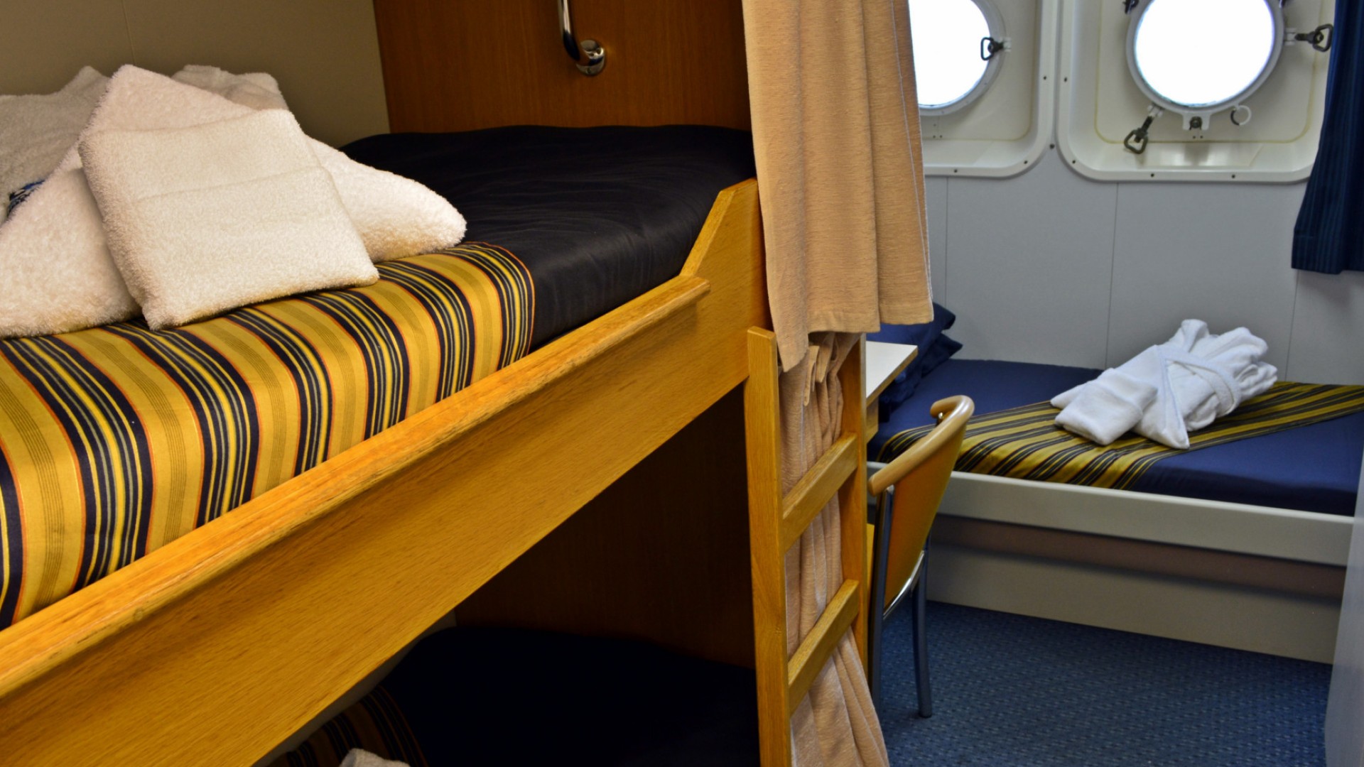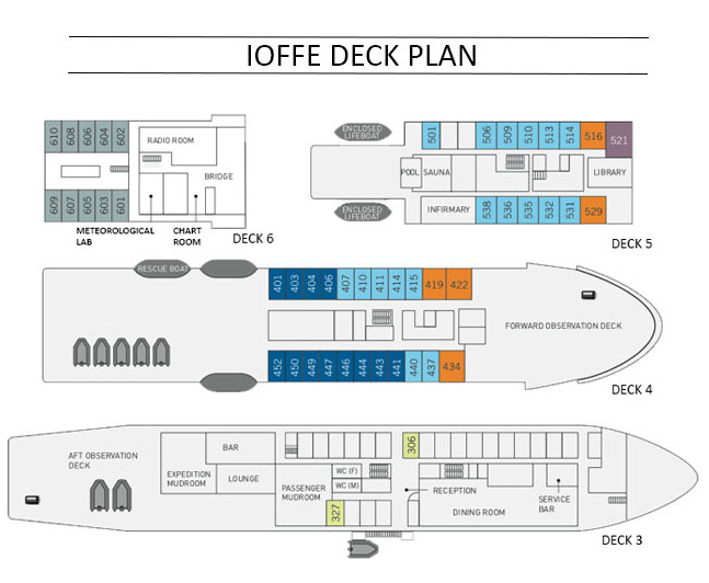- Cabins have either shared, semi-private or private facilities (See deck plan).