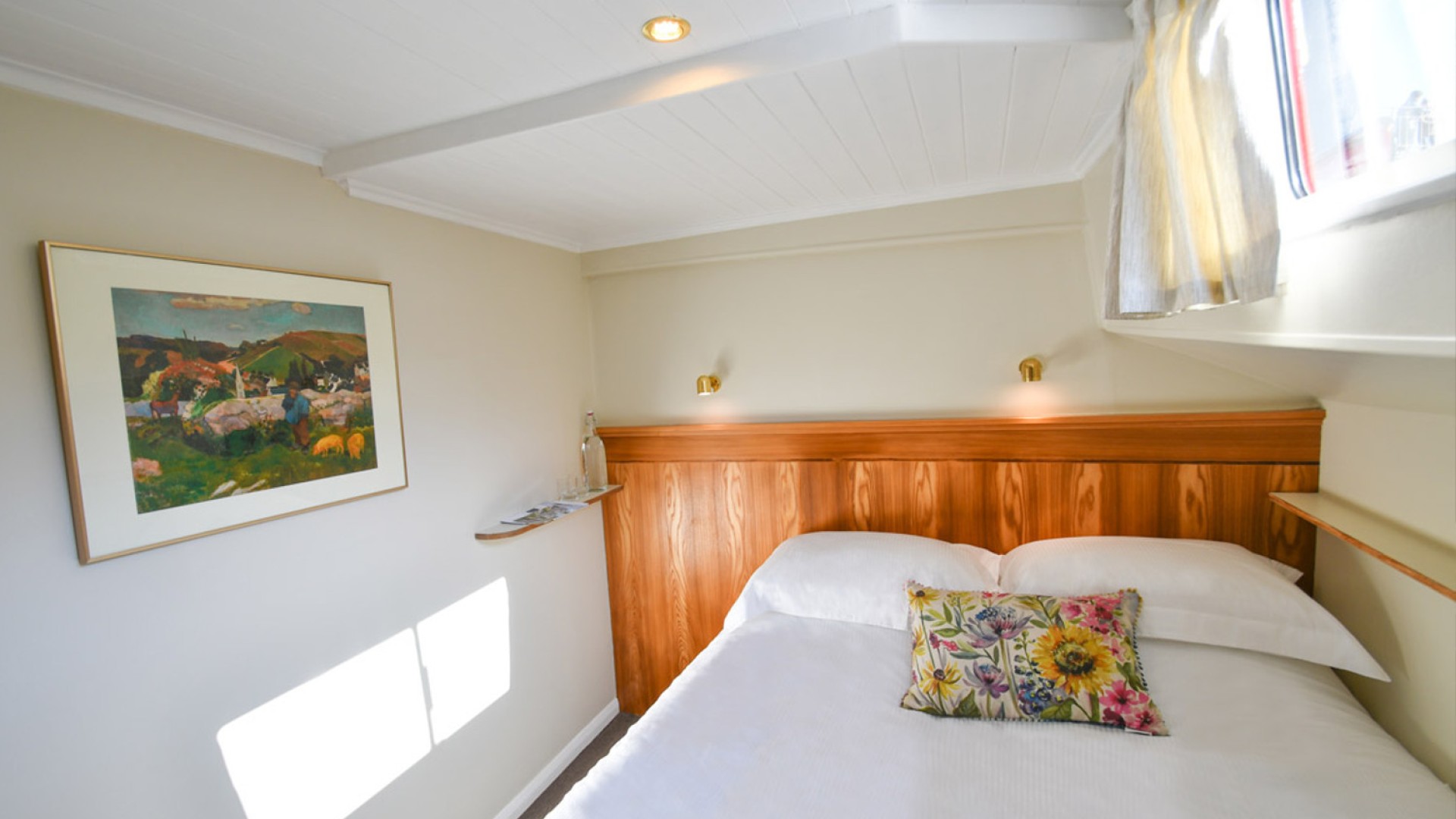 There are three double cabins, two with twin beds and two designed to accommodate singles, all with plenty of storage and porthole windows that can be opened to allow the refreshing breezes in. Individually controlled air conditioning units mean you can have the temperature exactly as it suits you. In the bathroom, you’ll find a toilet and shower, as well as a hairdryer, safe, towels, and toiletries from Molten Brown.