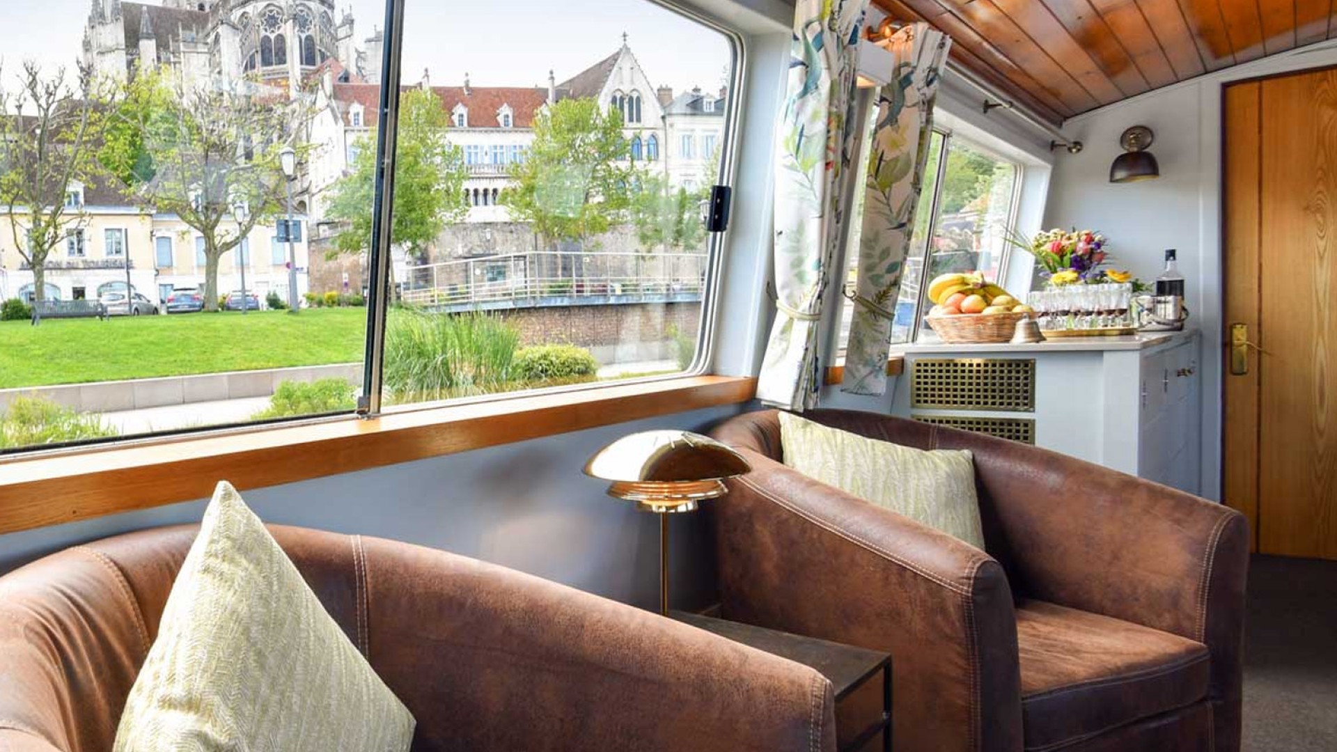 With the capacity to accommodate up to 12 passengers in eight suites, the “Luciole" is a 114-foot (34.7-metre) barge that cruises the sun-drenched Nivernais Canal. Our itineraries combine leisurely journeys through the vineyard-blanketed landscapes of Burgundy with daily bus excursions to explore the region’s medieval market towns and chateaux.